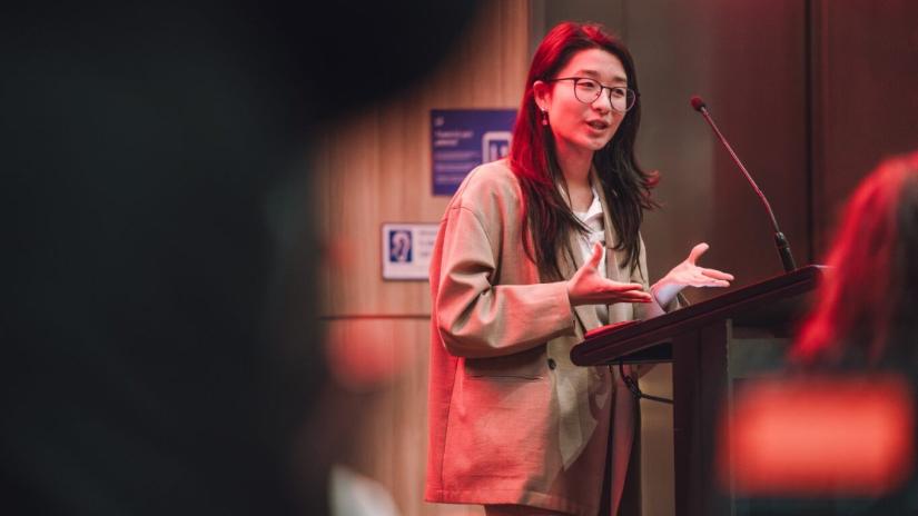 Following Josef’s reflections, current Bachelor of Information Technology Bachelor of International Studies (majoring in Data Analytics and Japanese) student Rebecca Lu took the stage to share her transformative experiences through the Language, Culture and Global Exchange pathway at Ochanomizu University in Tokyo. Her speech was centred on the theme of gratitude.