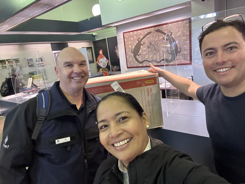 Kate Delmo with Alex Rixon-Booth (CEO, CommandPost) and Jay Ziino (workshop facilitator; Rescue Pty Ltd).