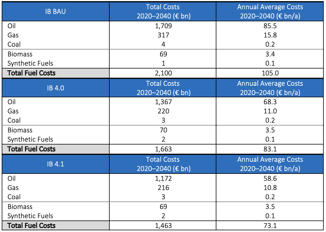 For the whole Iberian Peninsula, the cost advantage for the IB 4.0 pathway adds up to Euro 405 billion between 2020 and 2040 and Euro 669 billion – Euro 32 billion annually – for the IB 4.1.