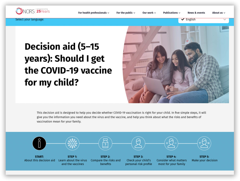 The five-step tool simply titled “Should I get the COVID-19 vaccine?” is currently available for adults and children (aged 5 to 15), with a third decision aid for children aged 6 months to 5 years with medical risk currently in development.