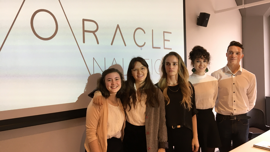 The team of students from Oracle Analytica, an AI lead tech company from the future, needed to recruit humans to meet a government-enforced ‘diversity’ mandate, where companies have a human employee quota of 49%. Stepping into a separate office, visitors had to prove their performative value to a panel of hiring ‘AIs’ in a mock job interview.