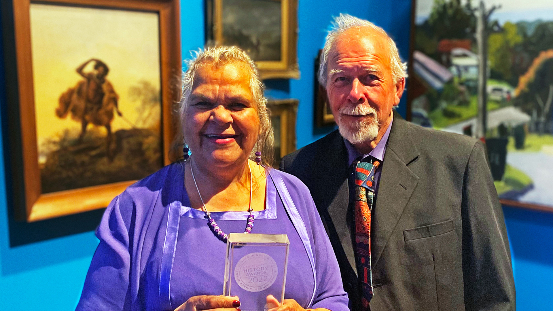 Governor family historian Aunty Loretta Parsley and Trevor Parsley at the NSW Premier's History Awards.