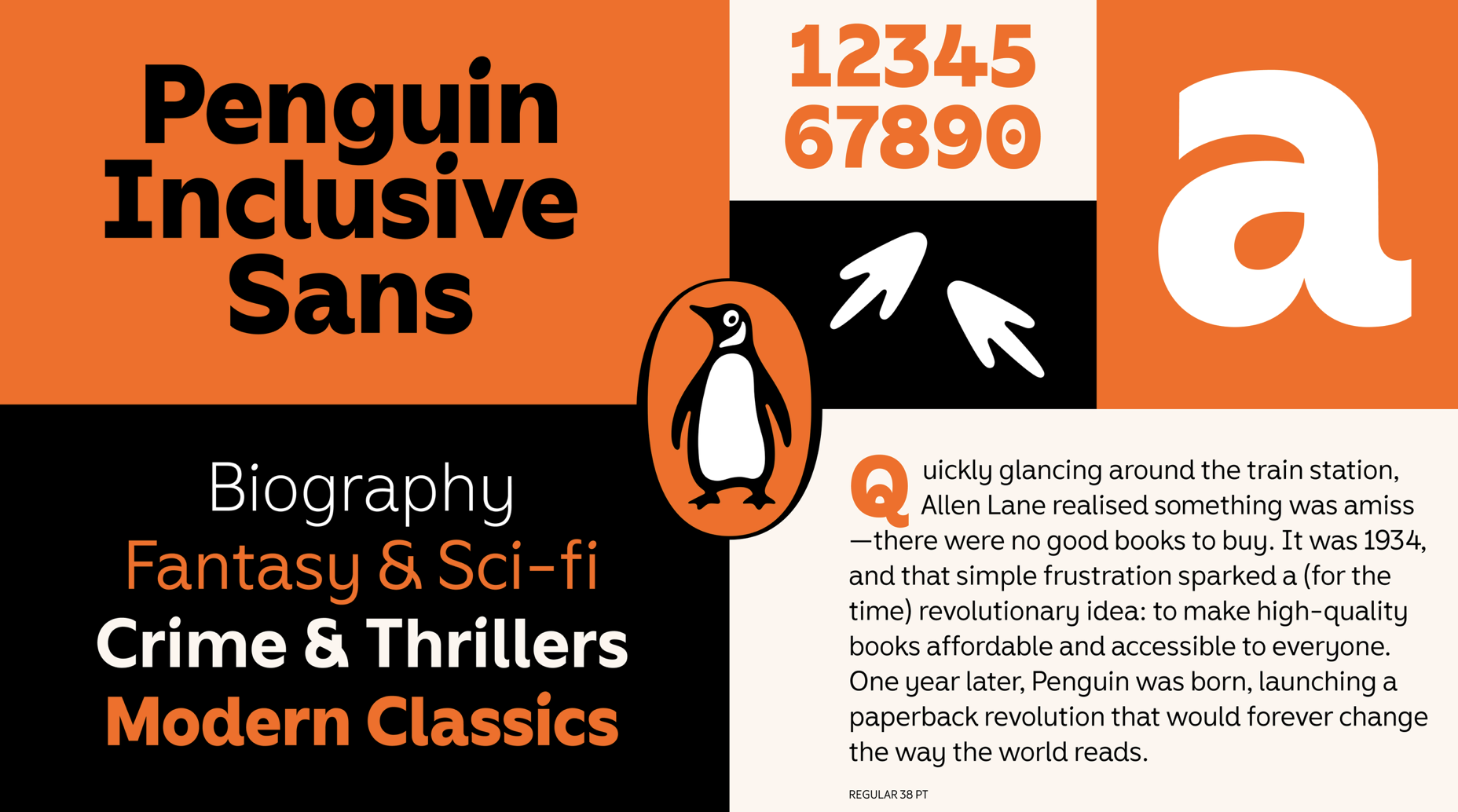 The result, Penguin Inclusive Sans, pays homage to Penguin’s rich history while setting the brand up for the future. As a brand typeface, it will feature on the company’s website and in all its corporate communications and signage in every market— its 530 glyphs can support over 600 languages.