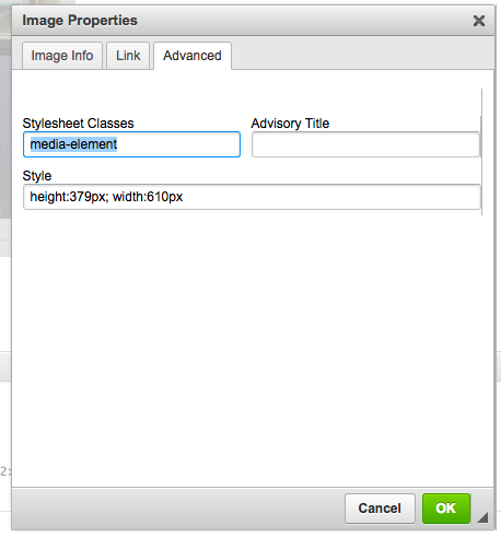 2. Go to the Advanced tab and delete the contents of the Stylesheets Classes field.