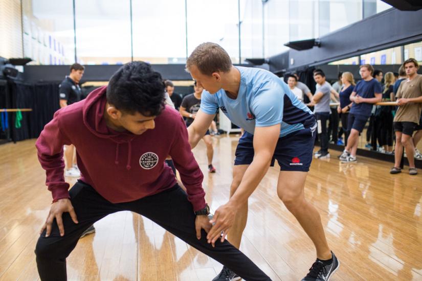 A guest lecturer teaches Sport and Exercise students about sports and conditioning