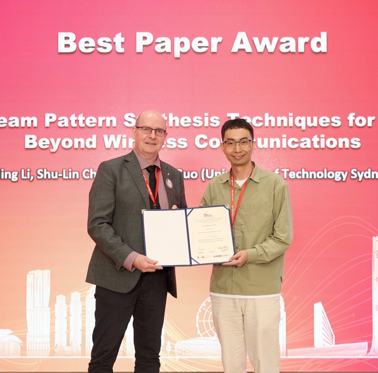 Ming’s award-winning paper “Multibeam Pattern Synthesis Techniques for 5G and Beyond Wireless Communications” was co-authored with Dr Shun-Lin (Stanley Chen) and Distinguished Professor Jay Guo. Multibeam antennas are regarded as a critical technology for 5G and beyond technologies, with this paper focusing on synthesizing multibeam radiation patterns – antenna signals that can point in several directions at once.