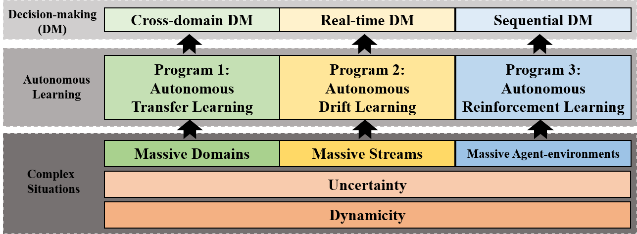 The project aims to create a novel research direction – autonomous machine learning for data-driven decision making that innovatively and effectively learns from big data to support decision-making in complex (massive, uncertain, dynamic) situations.