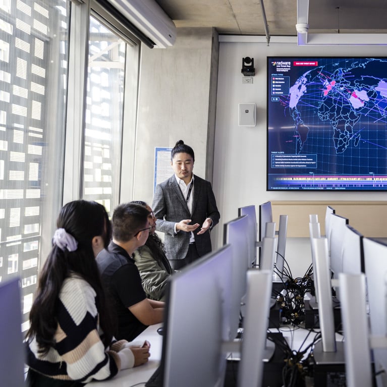 You’ll learn about threat intelligence and responding to cyber incidents in a simulated Security Operations Centre environment. You'll also undertake a Cybersecurity capstone project, where you'll work in a team to design and implement a secure project, giving you crucial practical experience to help you launch your career.